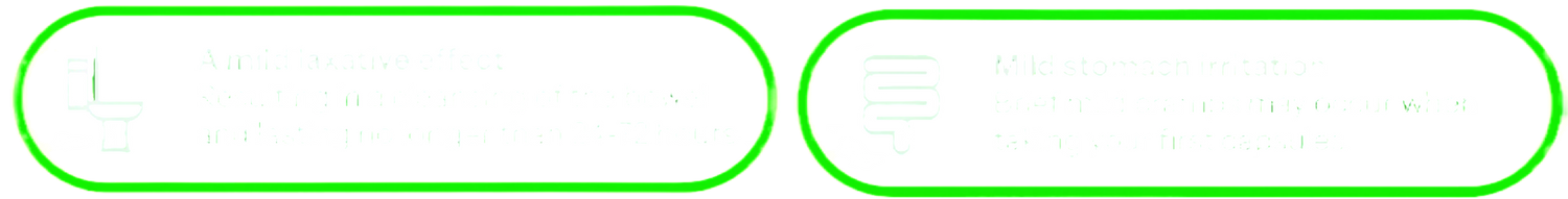 Calocurb has no ongoing side effects, with only 5% of users experiencing mild digestive discomfort in the first 24-72 hours as the body adiusts to naturally increased GLP-1levels, Graduallyincreasing your dose over several days can help ease anyinitial discomfort